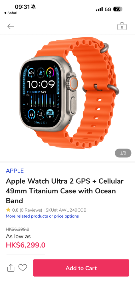說來有點慚愧,我也忘記是否本年還是去年,因一次遇到某大電商平台Club 竟有Apple Watch Ultra 2做特價。當時想自己用的Apple Watch 7不經不覺已用多年,擔心有天可能會壞,所以見當時真的很平便訂購了。